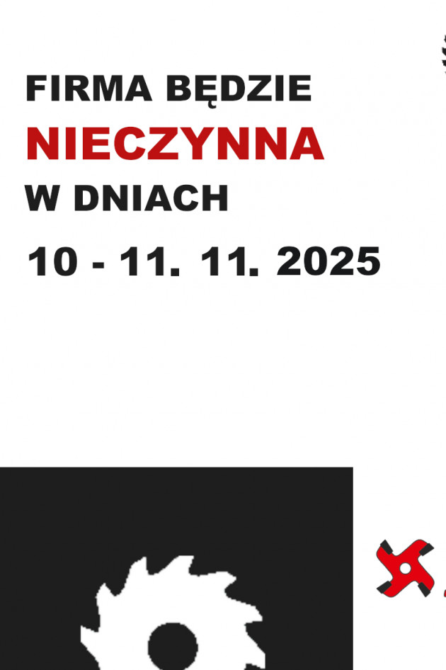 Strona główna Aktualności 11 Listopad Aktualności 07.11.2025 Firma będzie nieczynna w dniach 10 - 11. 11.