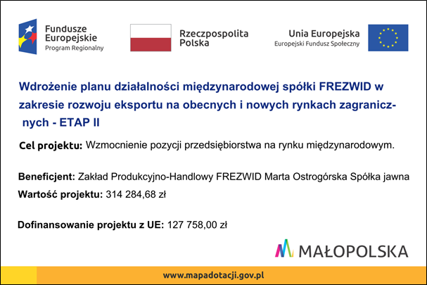 II Projekt: Wdrożenie planu działalności międzynarodowej spółki FREZWID w zakresie rozwoju eksportu na obecnych i nowych rynkach zagranicznych - ETAP II.